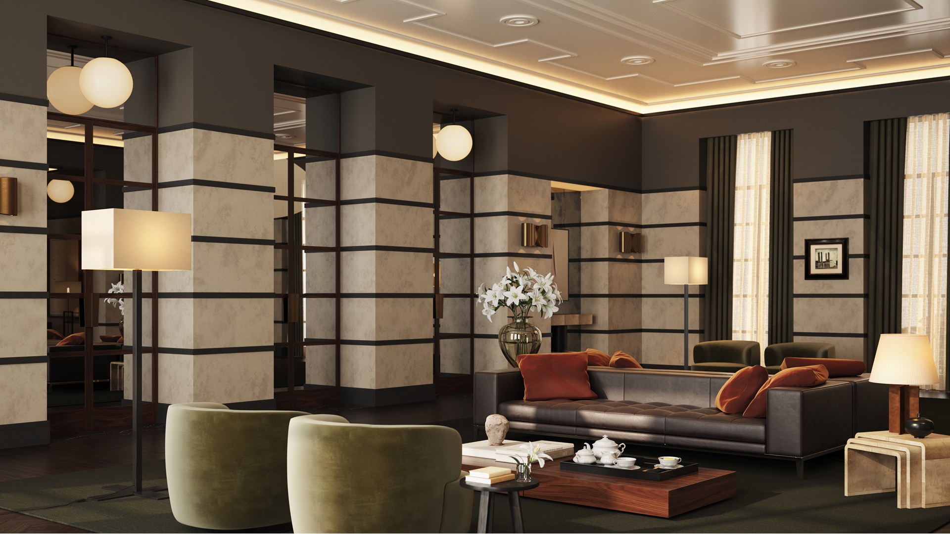 Auch wenn wir heute kein authentisches Art-Déco-Interieur mehr in seiner Gesamtheit nachbilden, greifen wir gerne auf dessen Stilmerkmale und charakteristischen Details zurück. Auf subtile Weise integriert, verleihen diese Elemente zeitgenössischen Umgebungen eine grafische und zeitlose Note.