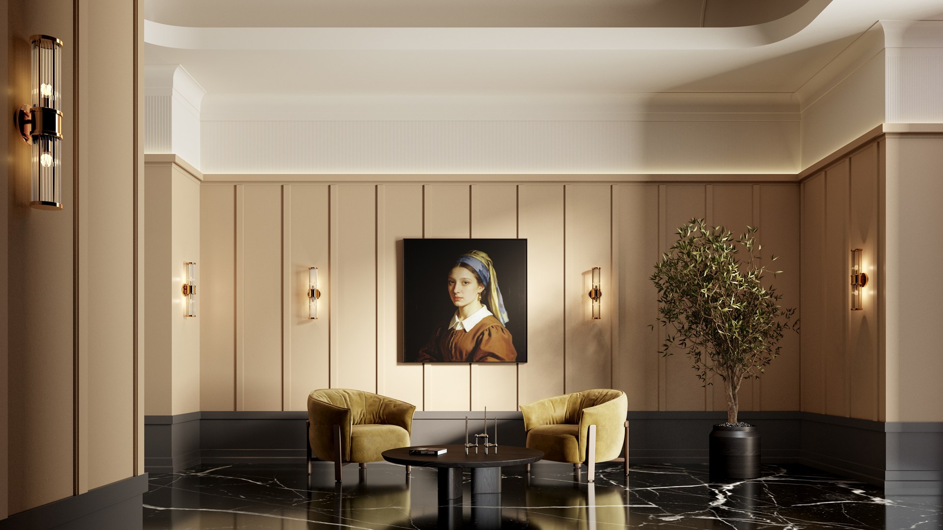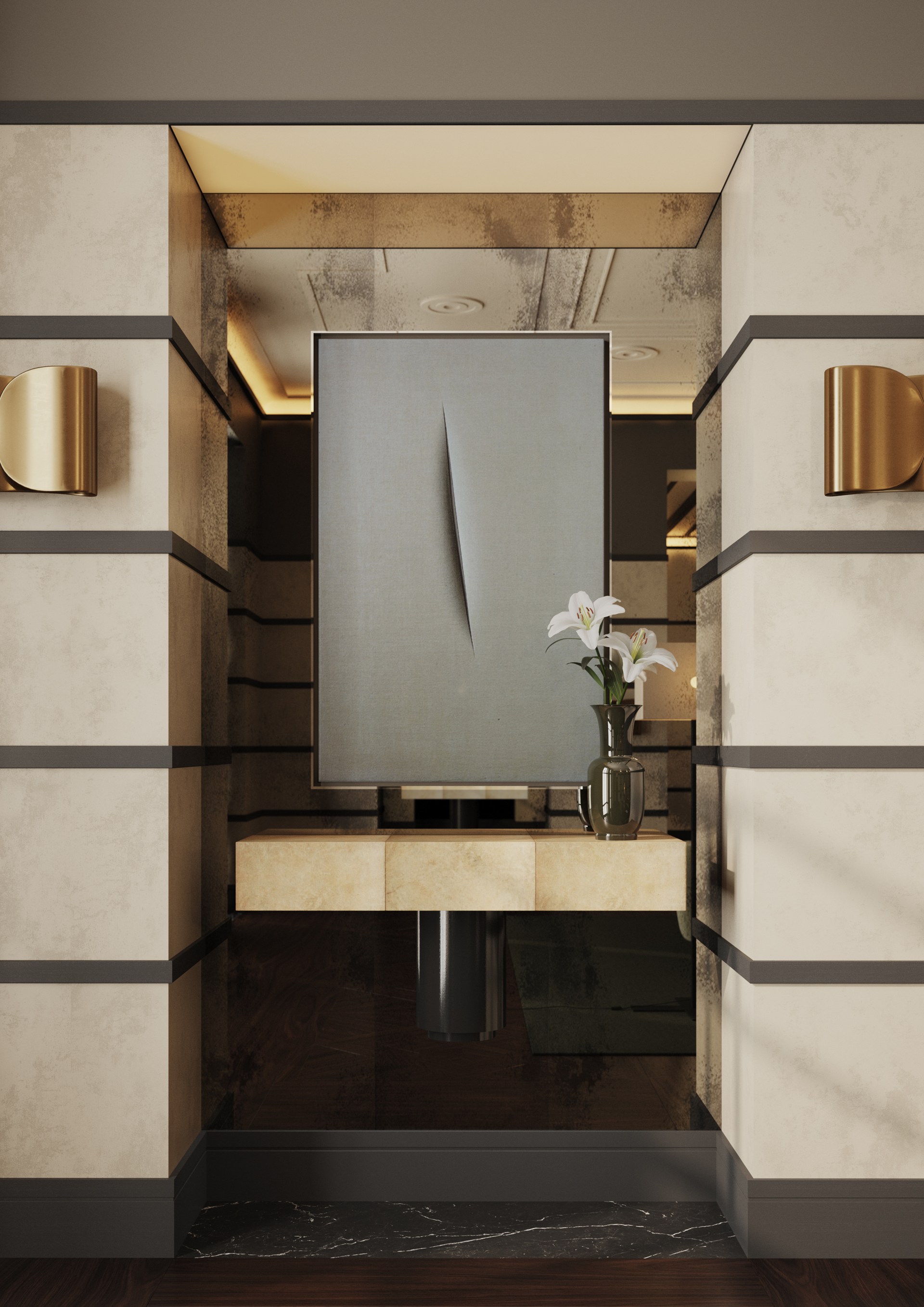Schlichte, klare geometrische Formen, die an den Art-Déco-Stil erinnern und sich gleichzeitig harmonisch in moderne Projekte einfügen.