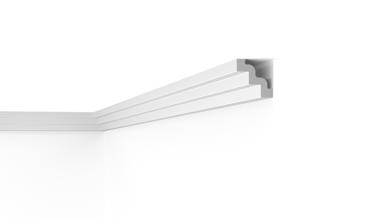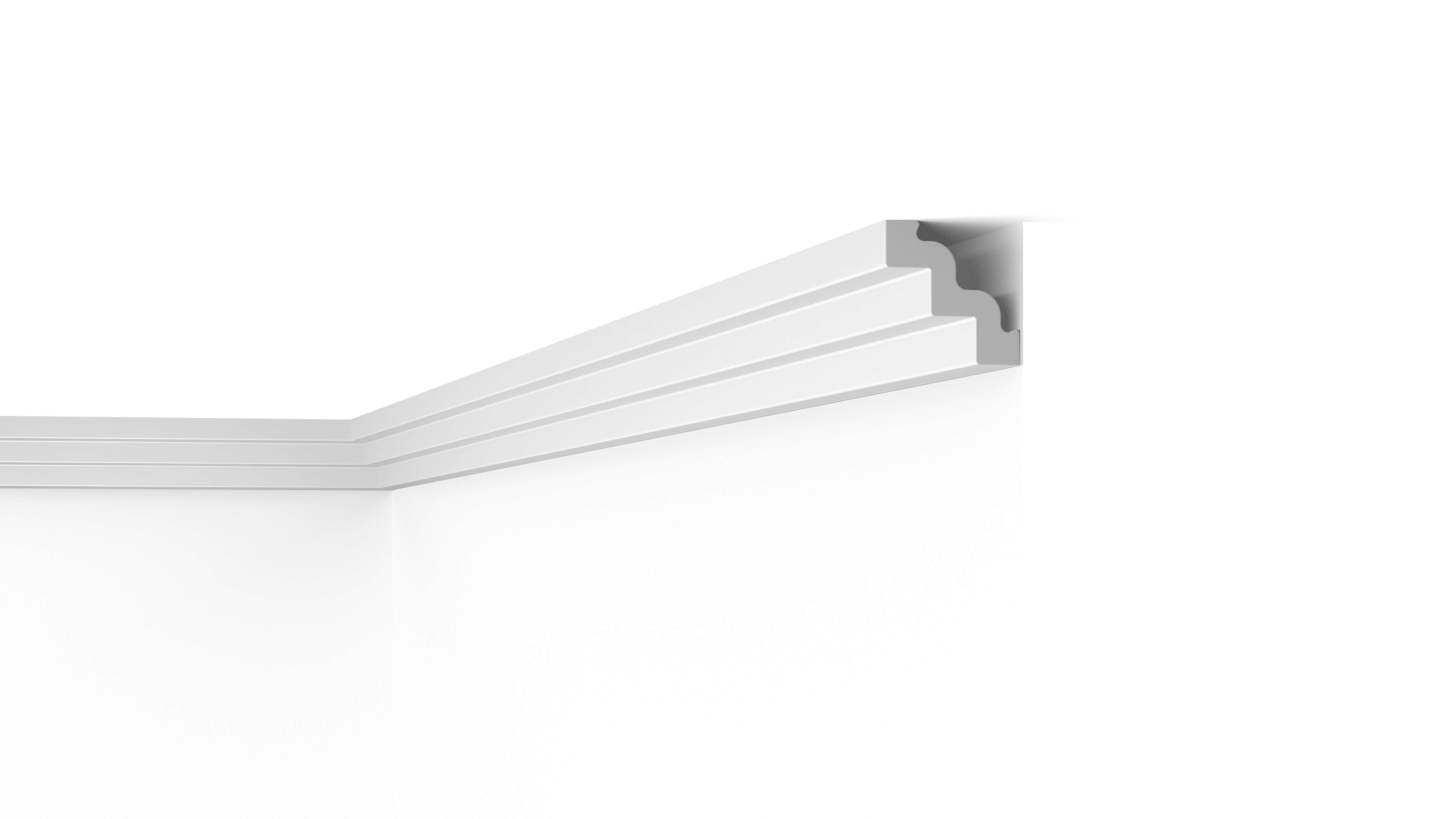 Um die Höhe eines Raumes zu betonen, wählen Sie eine abgestufte Deckenleiste wie die ST3 NOMASTYL®. Die geometrische, symmetrische Form ist ideal für moderne Küchen, Bars und Restaurants. Die Deckenleiste ST3 NOMASTYL® hat ein kubisches Design, das einen Raum professionell und stilvoll abrundet. Dank des nässebeständigen Materials ist das ST3 NOMASTYL® für feuchte Umgebungen geeignet.