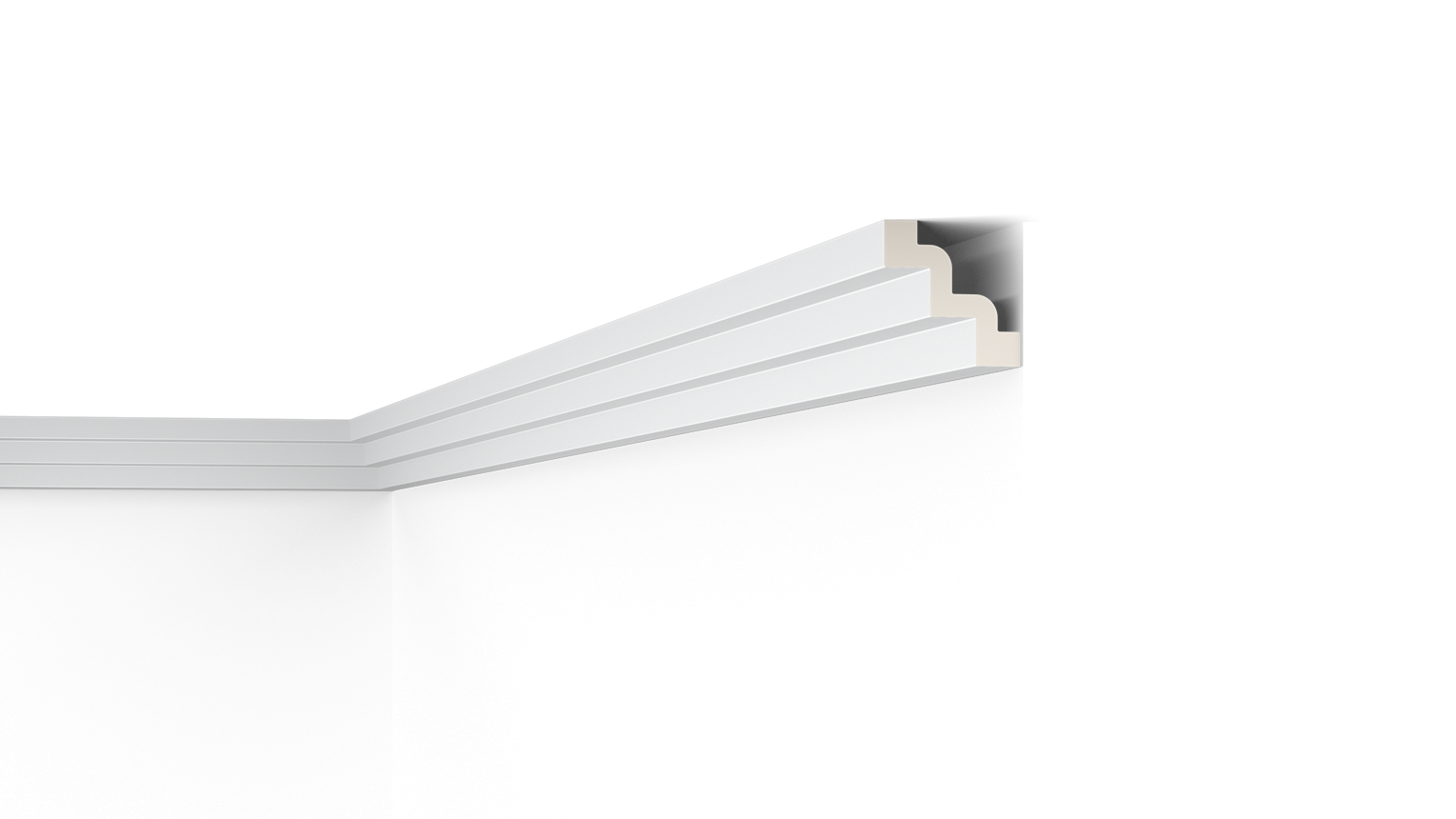 Hinter der Leiste entsteht ein Raum, der genutzt werden kann, um Kabel, unschöne Übergänge und Risse zu verbergen. Die Z52 Deckenleiste wird auf Gehrung geschnitten und mit Spachtelkleber ADEFIX®® montiert.Die Z52 wird grundiert geliefert und ist bereit für den endgültigen Farbanstrich.