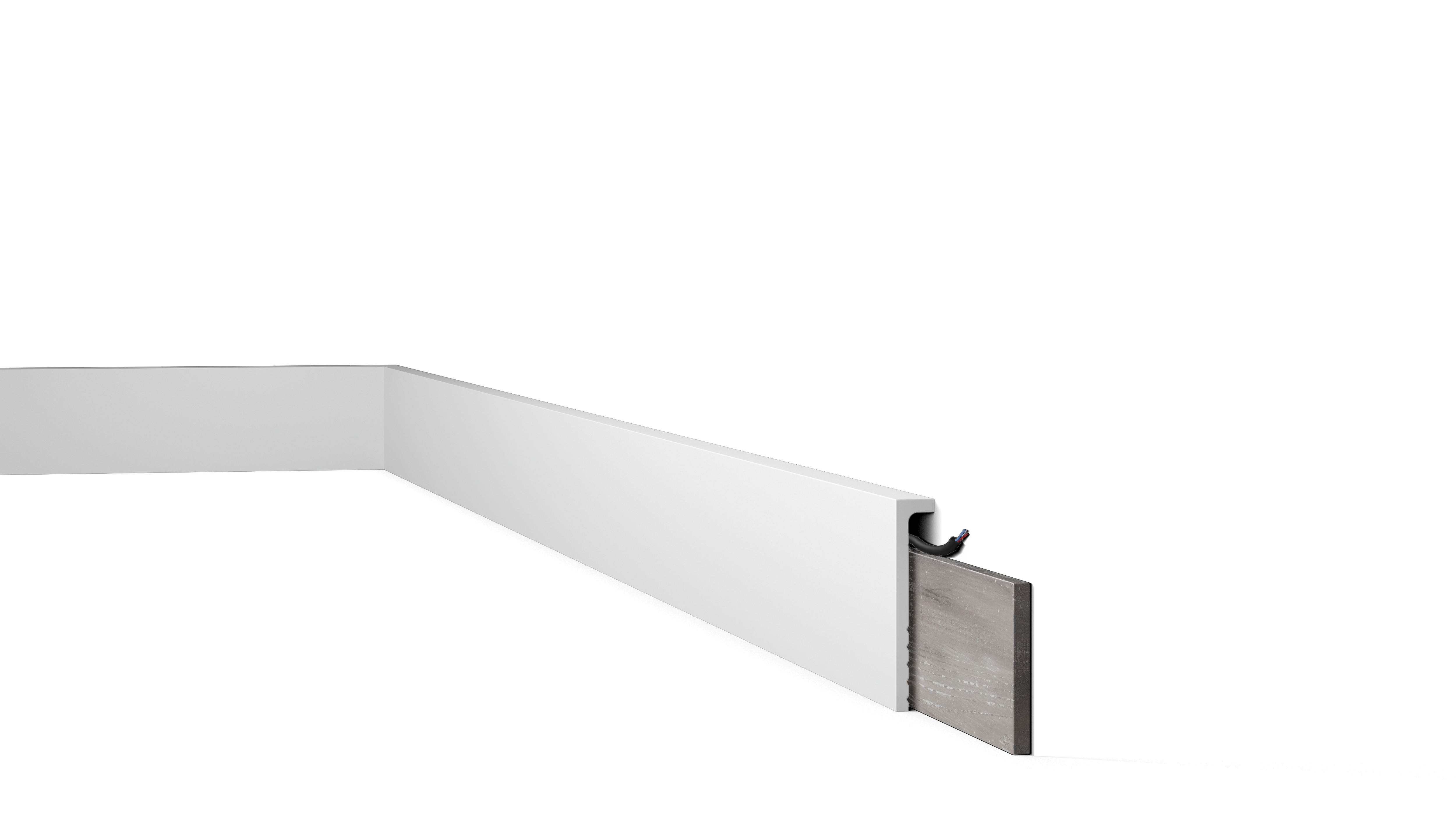 Avec la surplinthe CF2S, il n’est pas nécessaire d’enlever les plinthes existantes en risquant d’endommager les murs. Un espace de 15 mm de large est prévu à l’arrière de la surplinthe CF2S pour cacher une vieille plinthe. Si vous utilisez la CF2S sur du carrelage, servez-vous de la colle ADEFIX® PLUS. La CF2S est prête à peindre grâce à la couche de primaire appliquée en usine. La CF2S est idéale pour les espaces humides comme les salles de bains et les cuisines grâce au matériau résistant à l’humidité.