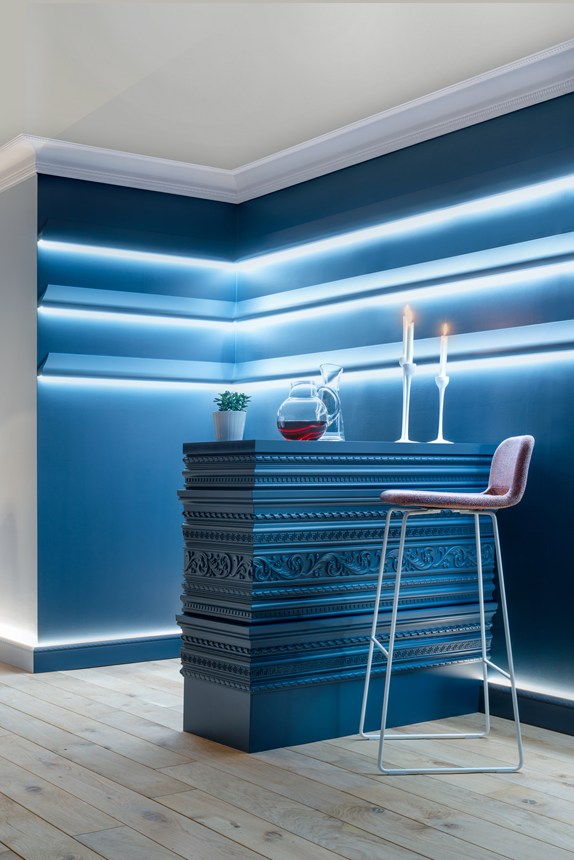 Des corniches, cimaises, plinthes et décorations murales à associer à un éclairage direct ou indirect pour une ambiance cosy.