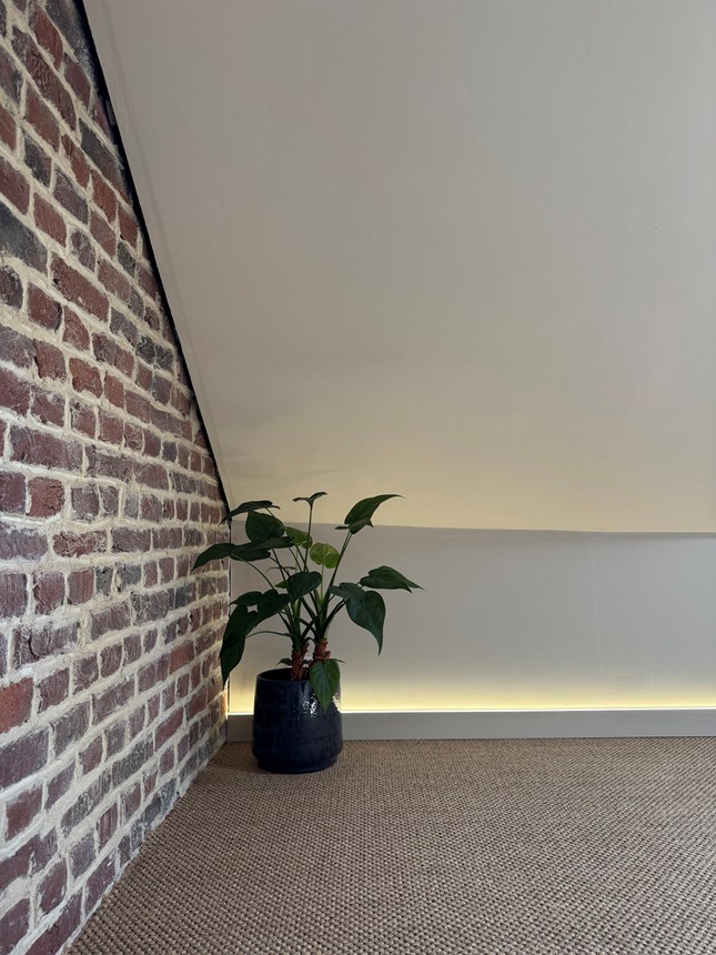 Toutes les plinthes pour éclairage indirect sont fabriquées en Belgique à partir d'électricité 100 % verte, alliant une fabrication éco-responsable à un design haut de gamme.